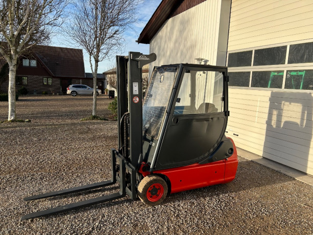 Linde el truck. Årg. 2001. Løftekap. 2000 kg. Løftehøjde. 3300 mm. Sideskift og gaffelflyt. Kabine m/varme. Kr. 48.900,00 excl. moms og levering
