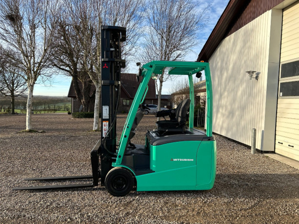 Mitsubishi el truck. Årg. 2015. Løftekap. 1600 kg. Løftehøjde. 5990 mm. Fuld friløft. Sideskift og gaffelflyt. Kr. 56.900,00 Excl. moms og levering.