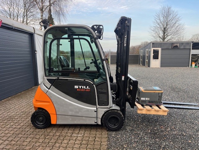 SOLGT Still el truck RX20-20. Årg. 2011. Løftekap. 2000 kg. Løftehøjde. 4700 mm. Timer. 690. Batteri. 2018. Fuld friløft. Sideskift og gaffelflyt. Kabine m/varme. Kr. 79.000,00 excl. moms og levering