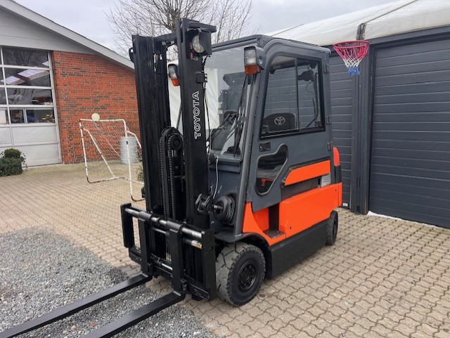 SOLGT Toyoyta el truck. Årg. 2005. Løftekap. 2000 kg. Løftehøjde. 3500 mm. Batteri fra 2017. timer. 3097. Fuld friløft. Sideskift og gaffelflyt. Kabine m/varme. Kr. 59.900,00 excl. moms og levering.