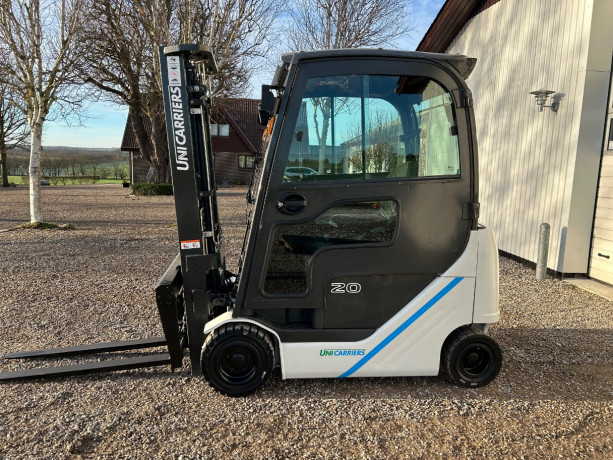 SOLGT Unicarrier el truck. Årg. 2019. Løftekap. 2000 kg. Løftehøjde. 3300 mm. Fuld friløft. Sideskift og gaffelflyt. Kabine m/varme. kr. 69.900,00 excl. moms og levering
