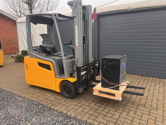 Jungheinrich el truck. Årg. 2021. Løftekap. 1600 kg. Løftehøjde. 5000 mm. Fuld friløft. Sideskift og gaffelflyt. Kr. 95.900,00 excl. moms og levering